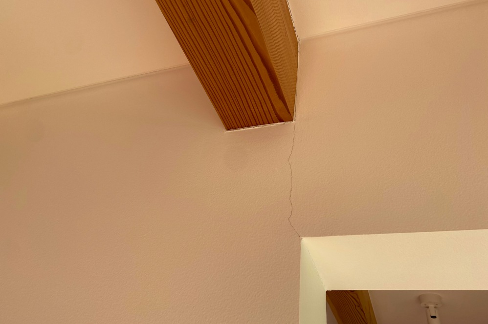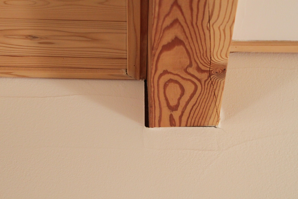 動いてあたり前なので、壁との間にすき間ができたり、塗り壁の一部が割れたりします。